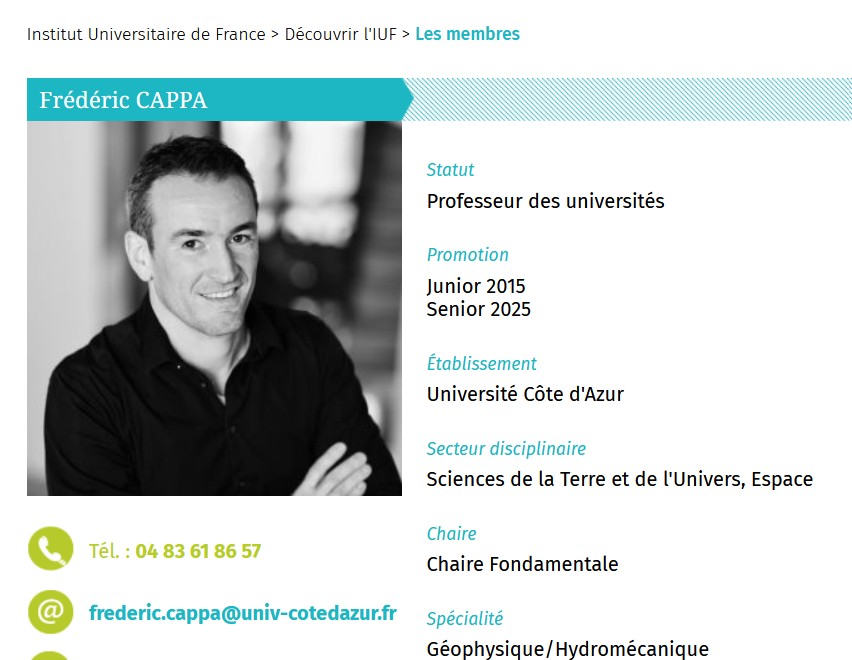 Cette nomination récompense ses travaux pionniers sur l’hydromécanique des failles géologiques et les séismes induits par les circulations de fluides. Frédéric Cappa a notamment mis au point un nouveau modèle permettant de mieux comprendre les mécanismes sismiques associés aux projets de stockage souterrain d’énergie. Ses recherches apportent une contribution majeure à l’évaluation du risque sismique, en particulier dans le contexte de la transition énergétique vers des systèmes plus durables.